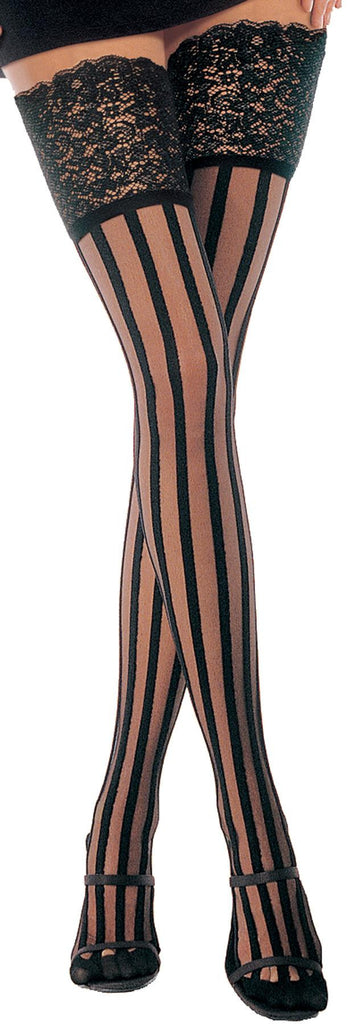 5'' Lace Top Sheer Stockings with opaque stripe. Black. One size fits most.