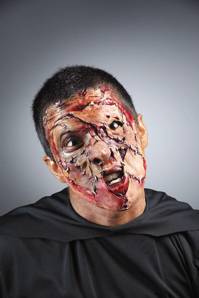 Hollywood comes to the Halloween market. Super soft foam latex prosthetics move with your every expression! Includes everything you need to achieve the look shown. Kit contains easy to follow step by step instructions, translucent powder, spirit gum adhesive and remover, 8 color makeup tray, makeup applicator brush, 2 makeup sponges, and 2 stipple sponges. All this on a beautiful full color blister package.