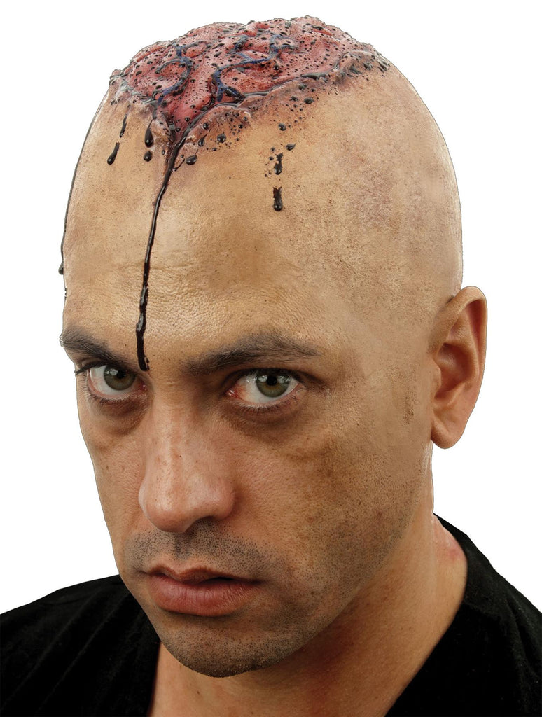 When people say to put on your thinking cap, I am sure this is not what they had in mind. Goes on like a bald cap but has an incredible look as if the skin on the top of your head was split and your brain was visible. Intense! Prosthetic only - any makeup, blood or accessories need to be purchased separately. One size fits most.