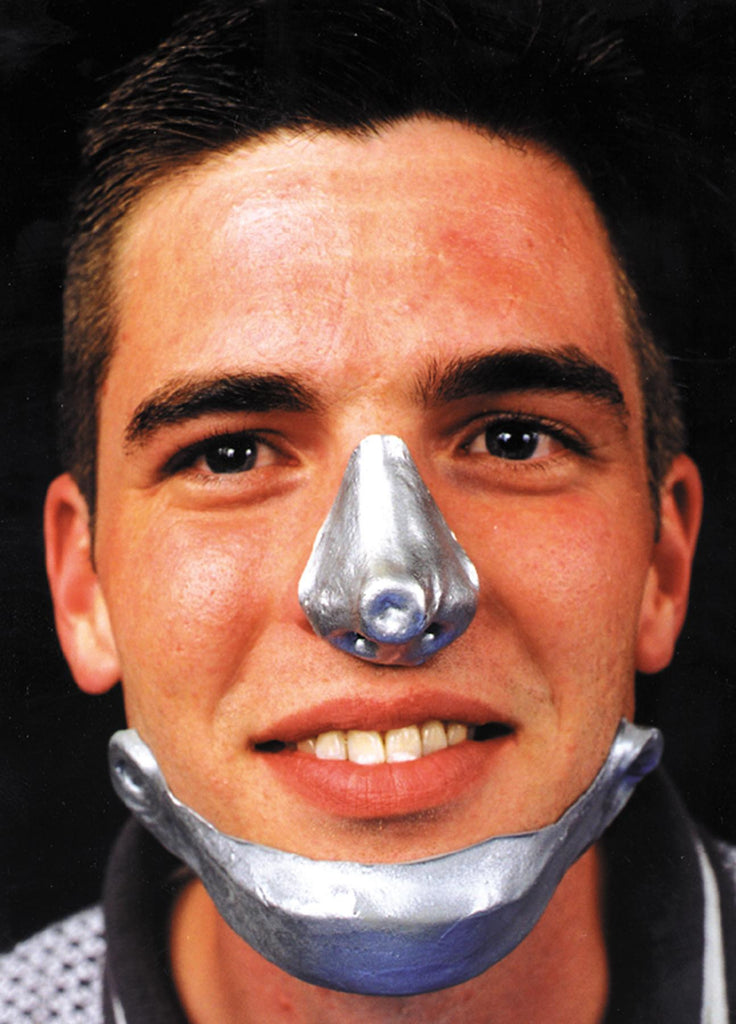 No Tin Man is complete without this silver latex chin. Simply attach with spirit gum or latex.