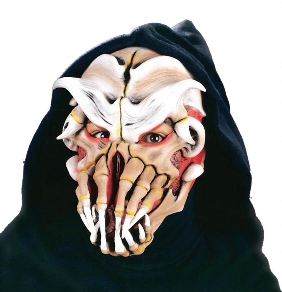 Latex rubber face mask with attached fabric hood. Elastic straps provide a comfortable secure fit.