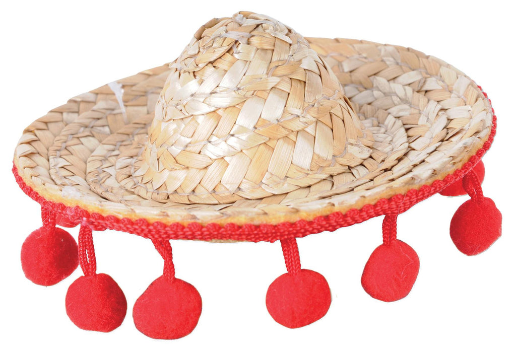 A great accessory for your Cinco de Mayo costume or just for everyday wear, this hairclip shaped like a sombrero also has red tassels hanging from it! Straw. One size fits most.