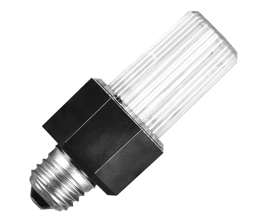 Strobe light that screws into any normal size light fixture for that flashing effect.  5 watt 120v